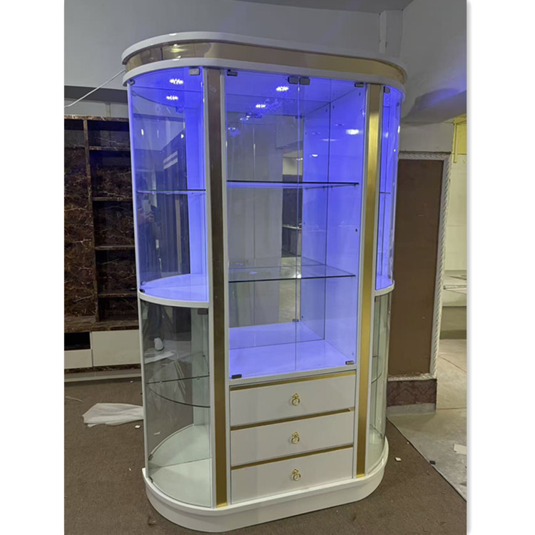 Ruang Tamu Kustom Kaca Tempered Lemari Pemajang Tangan Lemari Pemajang Segitiga Dinding Lemari Penyimpanan Dekorasi Sudut