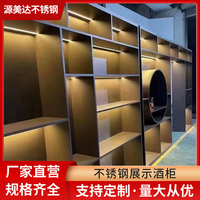 Kabinet tampilan dekoratif sederhana baja tahan karat kabinet dinding latar belakang kabinet anggur logam niche lemari buku pelat baja mewah