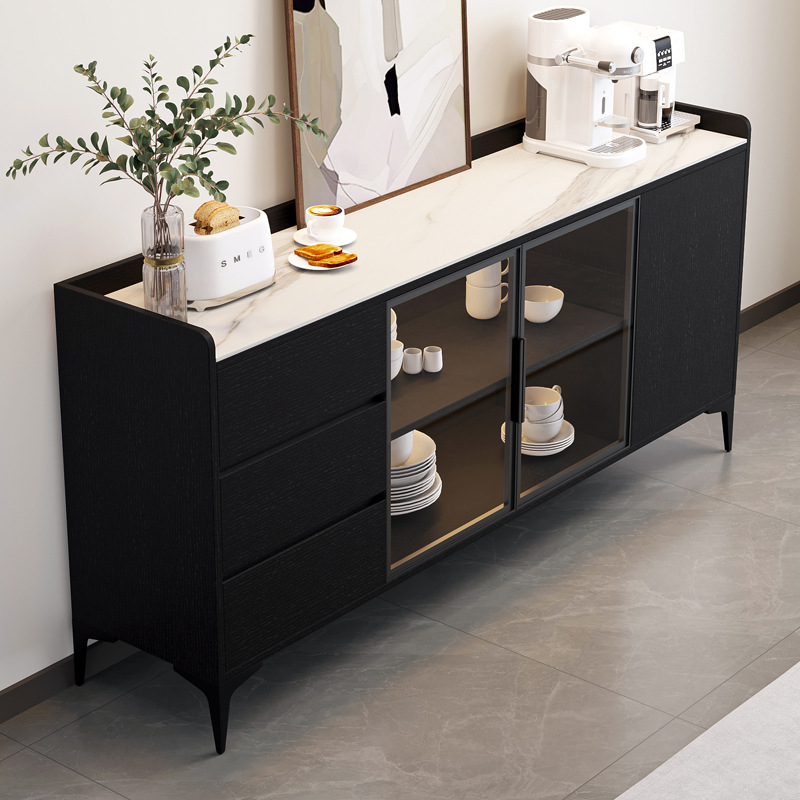 Kabinet samping dinding kayu solid rumah tangga, lemari teh minimalis kapasitas besar piring batu penyimpanan