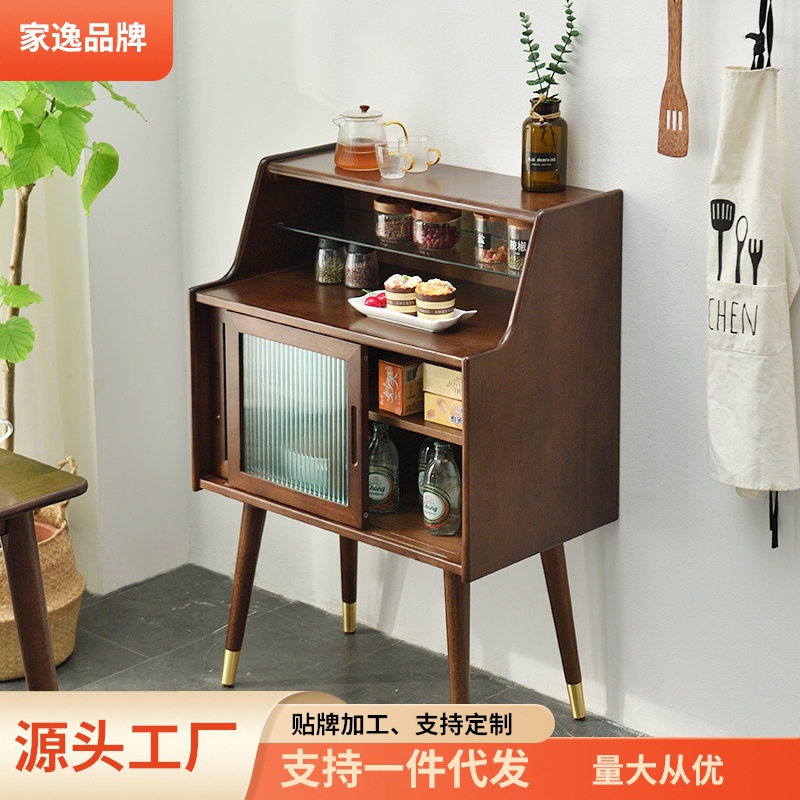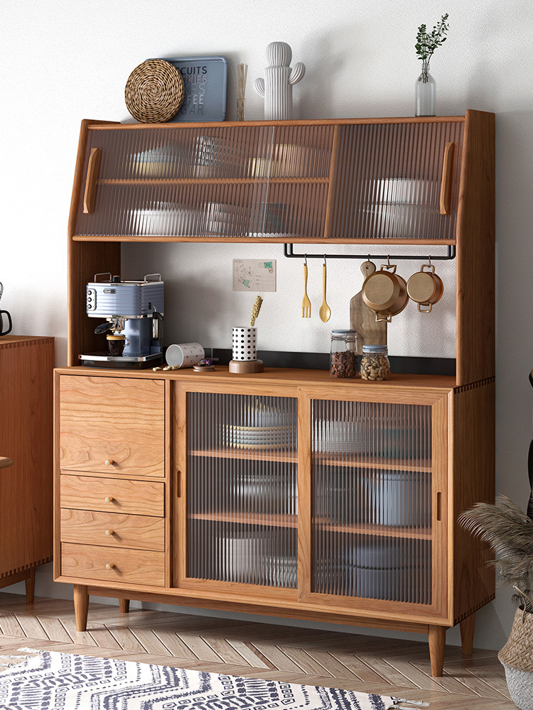 Kabinet samping kayu padat Nordic, modern rumah tangga penyimpanan dapur kabinet anggur sederhana ruang tamu dapur kaca lemari samping