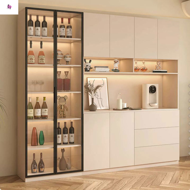 Lemari Samping Kayu Padat Satu Dinding Lemari Tampilan Rumah Tangga Ruang Tamu Sederhana Modern Lemari Penyimpanan Mewah Ringan Ruang Makan Lemari Anggur