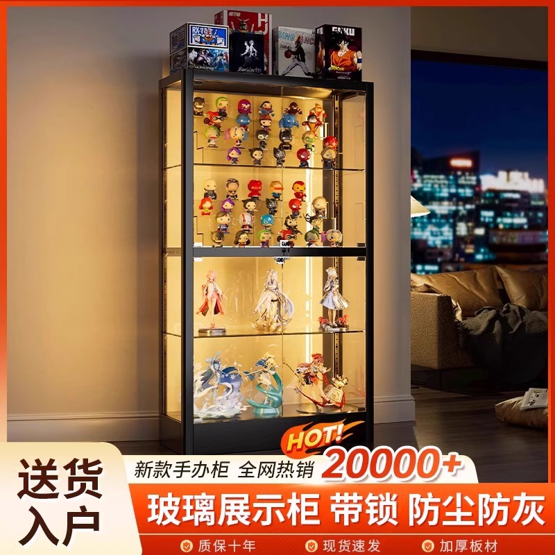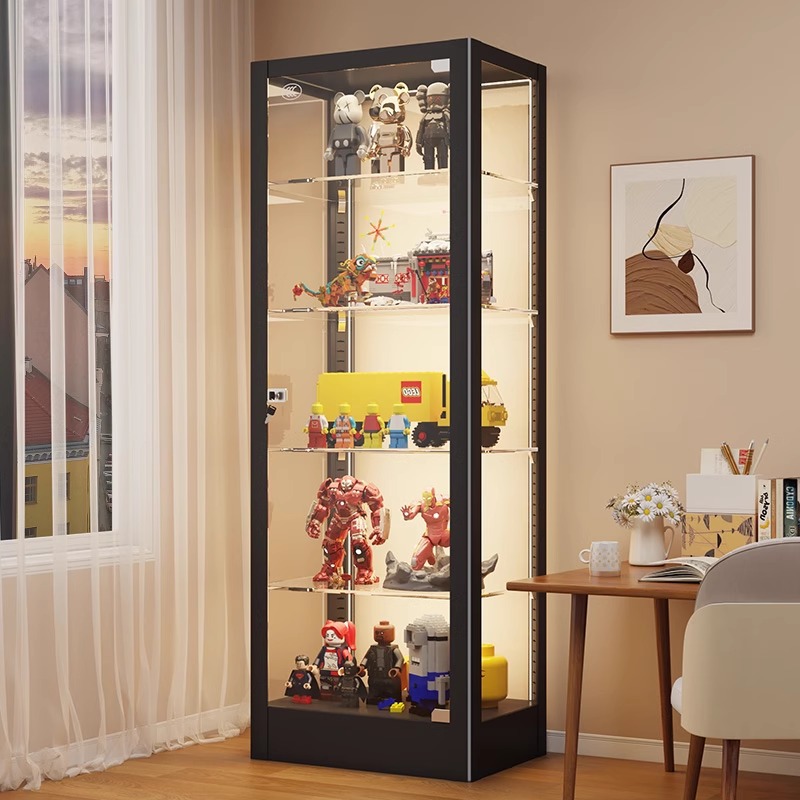 Rak Display Tangan Lemari Display Mainan Lego Rumah Tangga Lemari Kaca Tempered Transparan dengan Lampu Lemari Penyimpanan Wine Lemari Display
