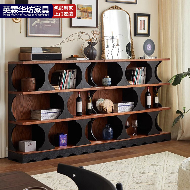 Lemari Buku Kayu Solid Retro Lemari Lantai Ruang Tamu Lemari Penyimpanan Lantai