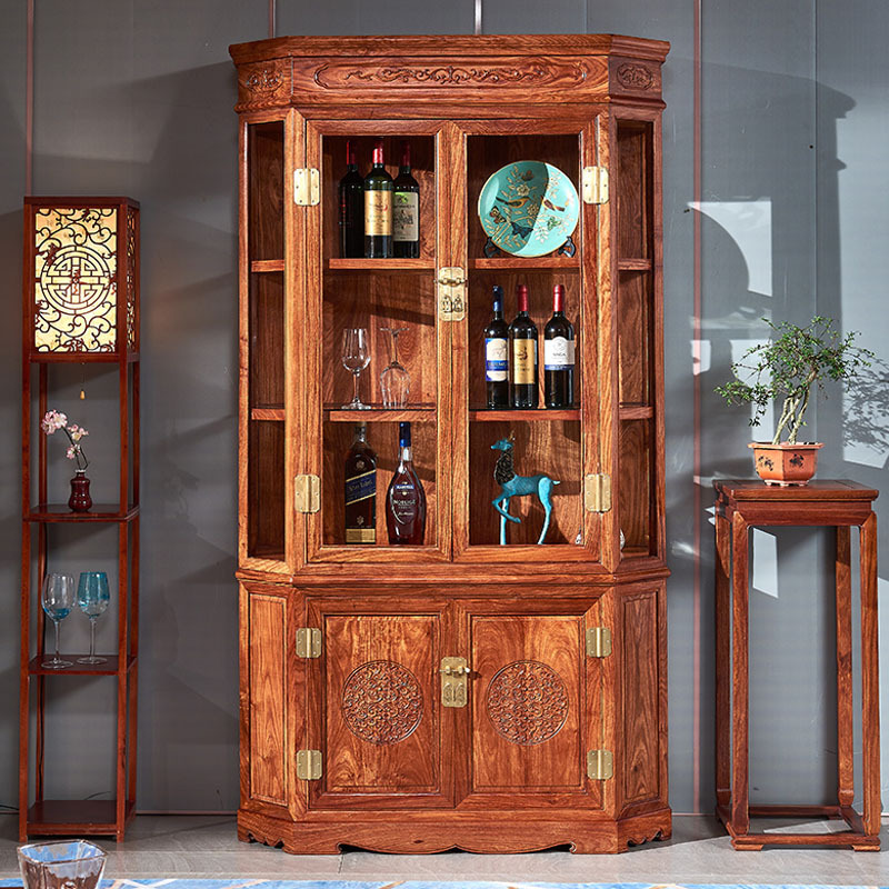Hedgehog Rosewood Lemari Anggur Kecil Lemari TV Ruang Tamu Lemari Berdiri Dinding Lemari Kaca Penyimpanan Multifungsi Kayu Rosewood