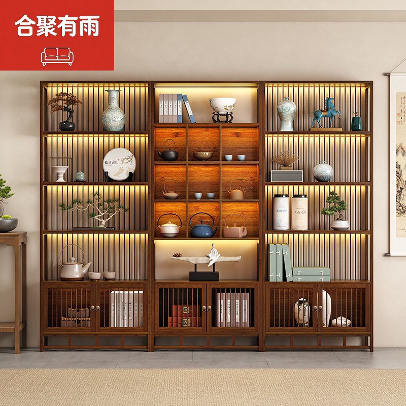 Heju Hujin Model Baru Bou Rak Kayu Asli Lemari Tampilan Teh Gaya Tiongkok Baru Lemari Teh Ruang Teh Duobao Sederhana Modern
