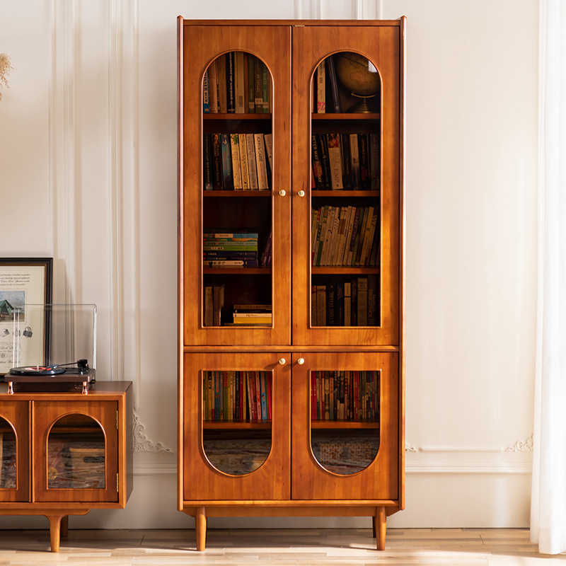 Nordic rak buku kayu padat kaca ruang tamu pintu ganda lemari penyimpanan anggur kabinet pajangan belajar retro penyimpanan dinding kabinet samping