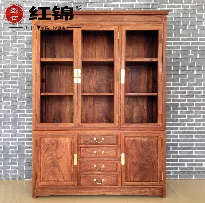 Rosewood rak buku Afrika rosewood landak rosewood dengan laci tiga pintu lemari buku rak buku lemari anggur ukir permukaan polos rak buku praktis