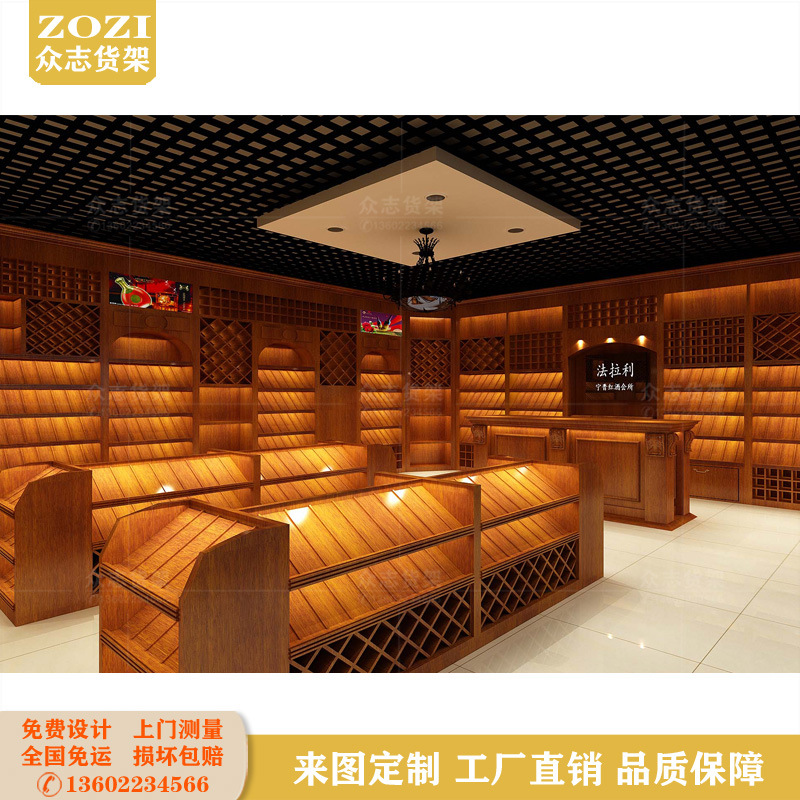 Kabinet anggur merah dudukan pajangan komersial kayu solid lemari pajangan desain dekorasi luar negeri minuman keras pajangan konter kaca