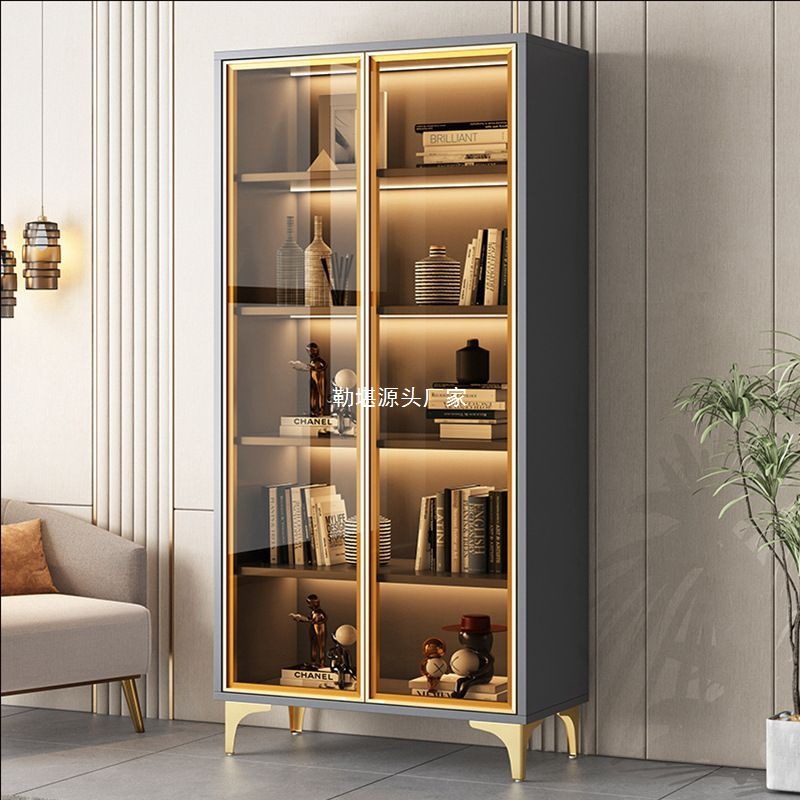 Lemari Buku Pintu Kaca Lemari Buku Rumah Tangga Tahan Debu Lemari Tampilan Dinding Lemari Ruang Tamu Lemari Penyimpanan Kaca Lemari Anggur Meja Tangan