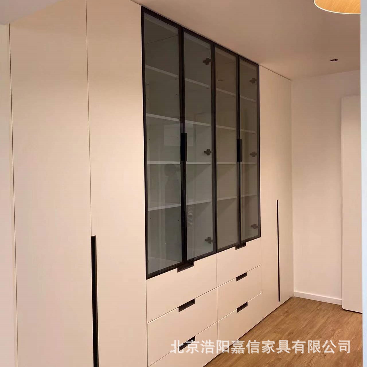 Rak Buku dengan Pintu Kaca Lemari Anggur Transparan Ruang Tamu Rumah Mewah Ringan