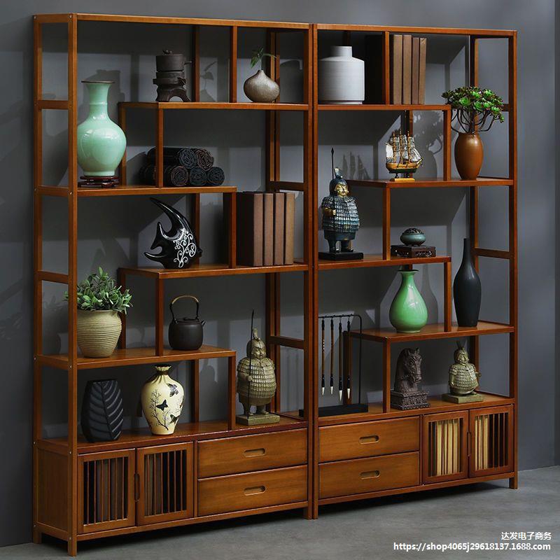 Rak kayu padat Tiongkok baru kabinet anggur ruang tamu lemari pembatas buku kantor lemari pajangan ruang teh partisi