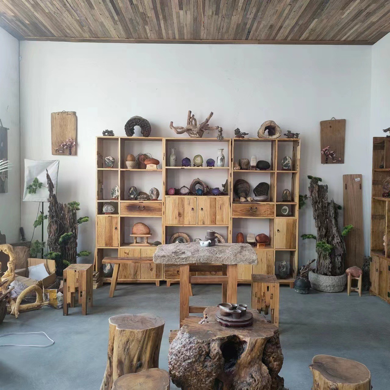 Rak Bogu Rak Buku Kayu Solid Gaya Tiongkok Rak Teh Rak Bunga Lemari Ruang Tamu Rak Rak Lantai Berlapis