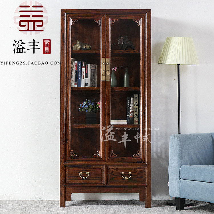 Kabinet anggur Cina Modern kabinet tampilan kaca penyimpanan ruang tamu pintu ganda kabinet dekoratif furnitur Ming dan Qing klasik Elm kabinet