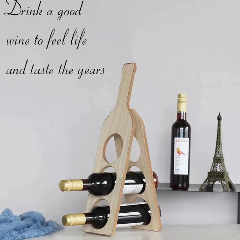 Rak anggur lipat bambu, lemari pajangan rumah dekorasi lemari anggur restoran 3 botol