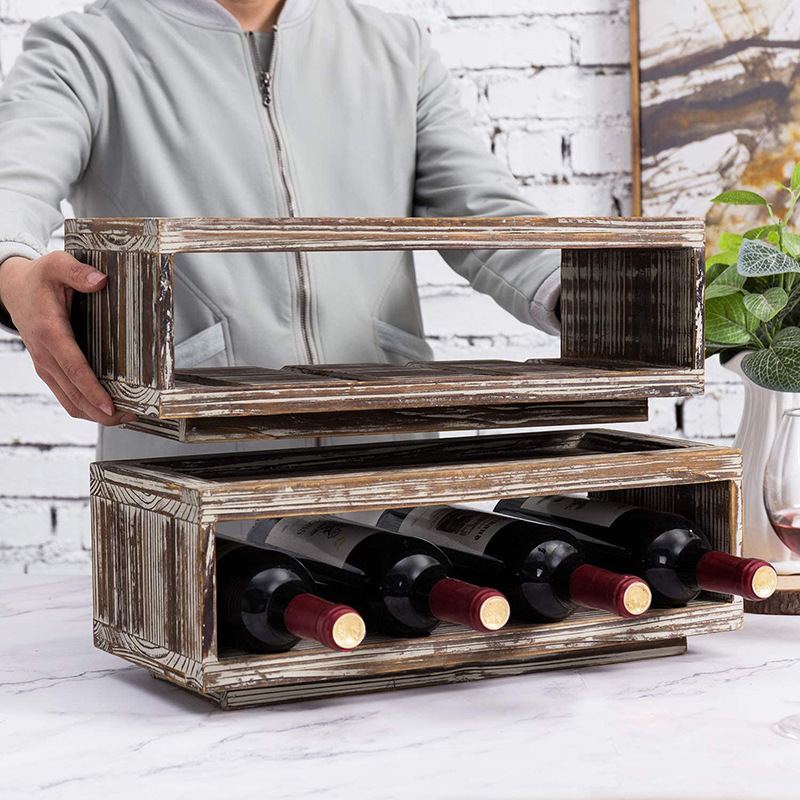 Grosir Pabrik retro sederhana rak anggur kapasitas besar multifungsi rak desktop dua lapisan dapat ditumpuk rak anggur kayu