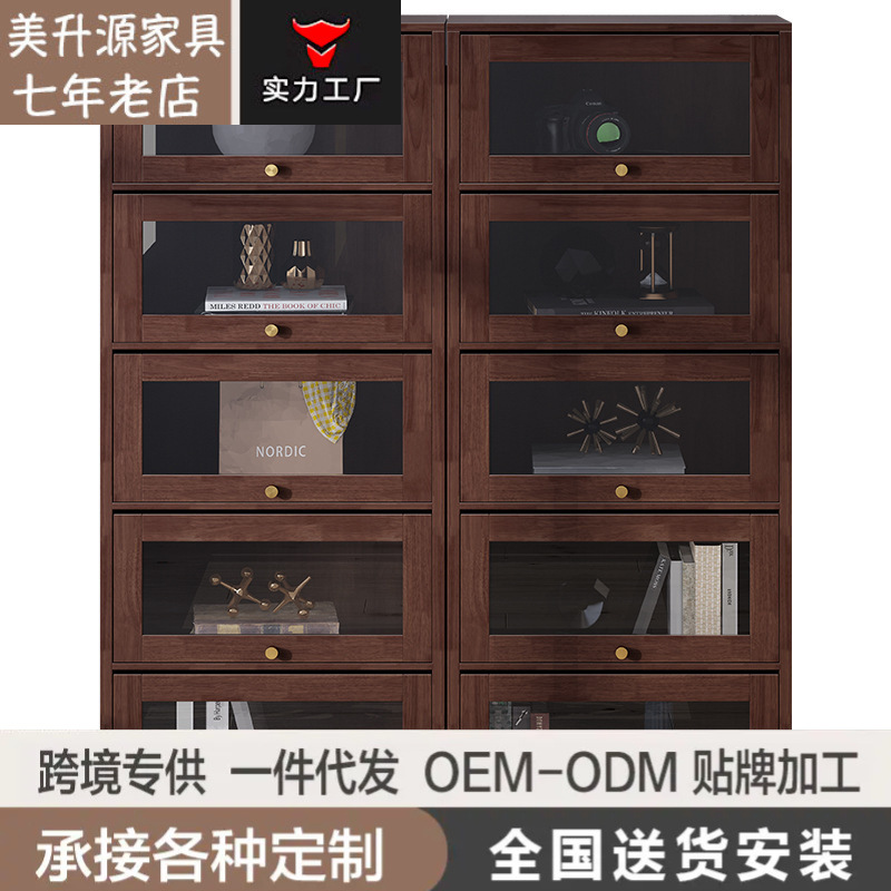 Pabrik Lemari Buku Kayu Solid Ruang Tamu Pintu Flip Lemari Penyimpanan Pintu Kaca Lemari Penyimpanan Ruang Belajar Lemari Anggur Tahan Debu Rak Buku Lantai