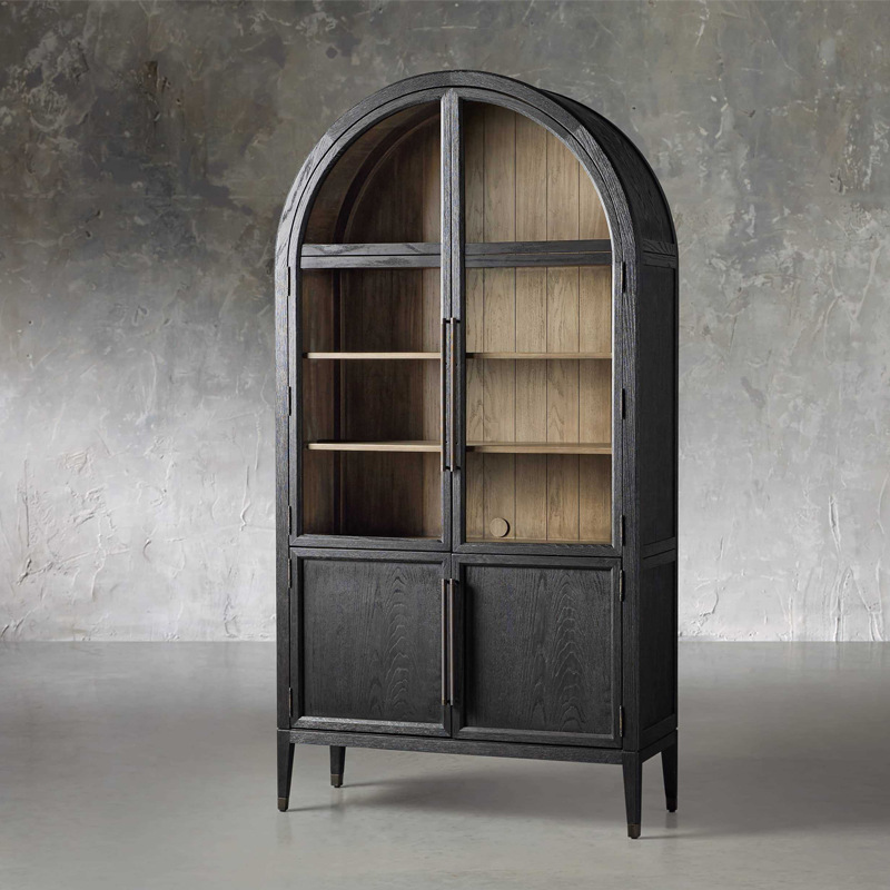 Casing buku lengkungan kayu padat gaya Perancis kabinet anggur hitam retro Amerika kabinet dekoratif papan samping kuno menengah Nordik