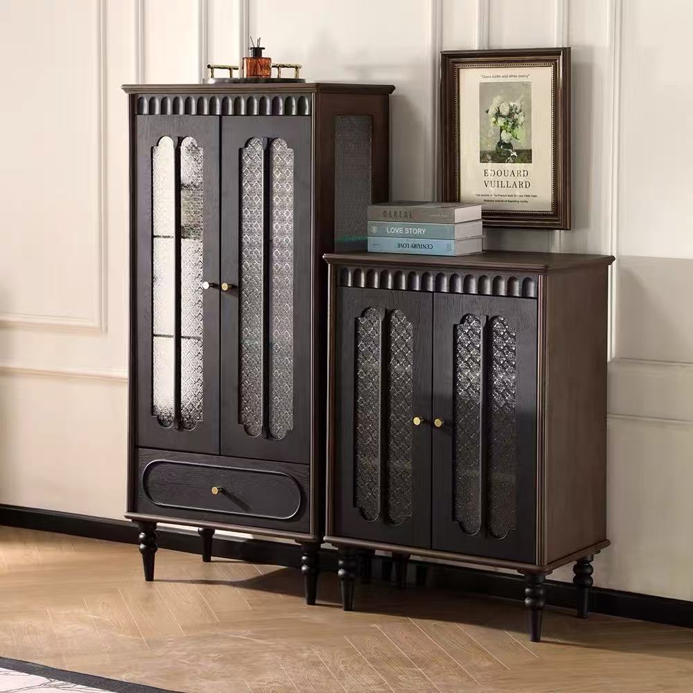 Lemari Buku Retro Kayu Solid Model Prancis Lemari Penyimpanan Ruang Tamu Lemari Penyimpanan Ruang Tamu Lemari TV Abad Pertengahan Lemari Penyimpanan Barang Sebelah Lemari Minuman Anggur