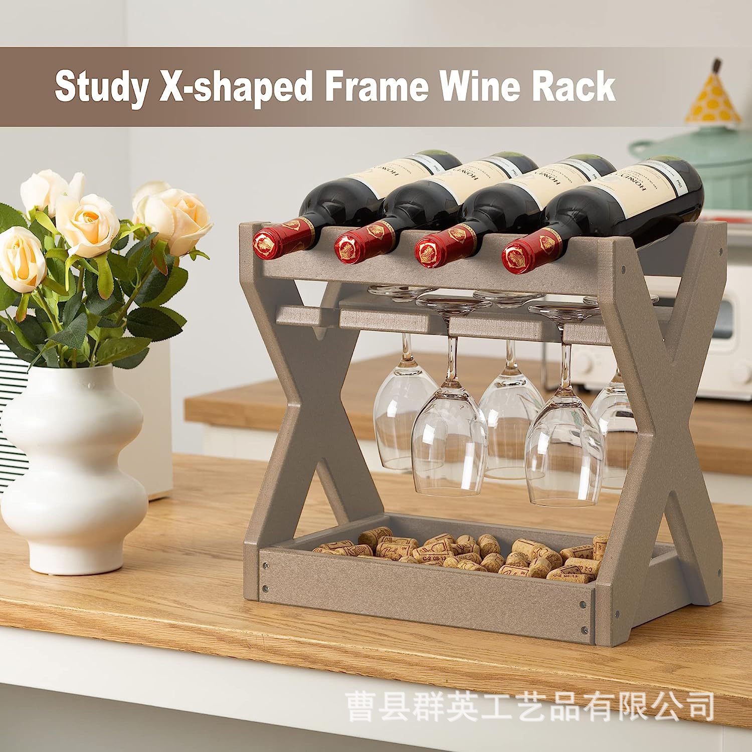 . Rak Gelas Anggur Merah Satu Bagian Rak Tampilan Gantung Gantung Kaki Tinggi Rumah Tangga Mewah Ringan Rak Anggur Merah Kayu Solid