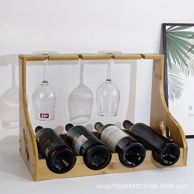 Rak gelas anggur, kayu rak penyimpanan terbalik rak kayu rak pengeringan bambu rak anggur sederhana