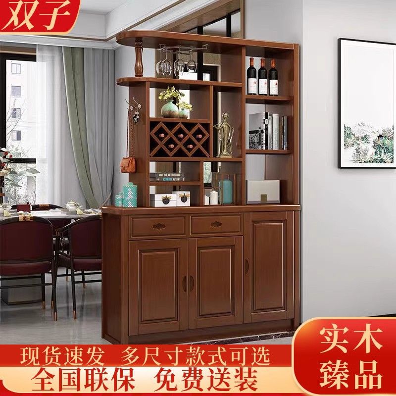 Kabinet anggur kayu padat gaya Tiongkok, ruang tamu dua sisi kabinet partisi pintu masuk terbuka kabinet sepatu apartemen kecil