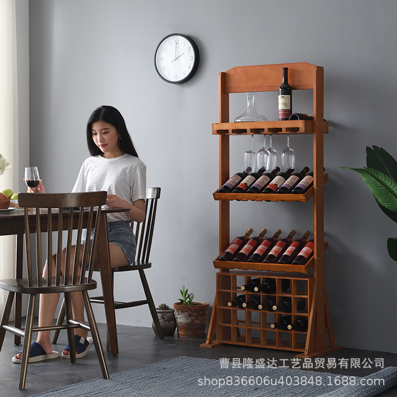 Rak anggur kayu Solid, rak anggur sederhana, ruang tamu, bar, rak tampilan lantai, rak anggur kayu anggur rumah tangga