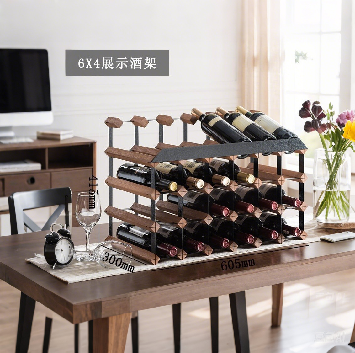 24 botol kayu solid dan rak anggur merah besi rak anggur rumah tangga botol anggur merah kreatif rak anggur dapat disesuaikan