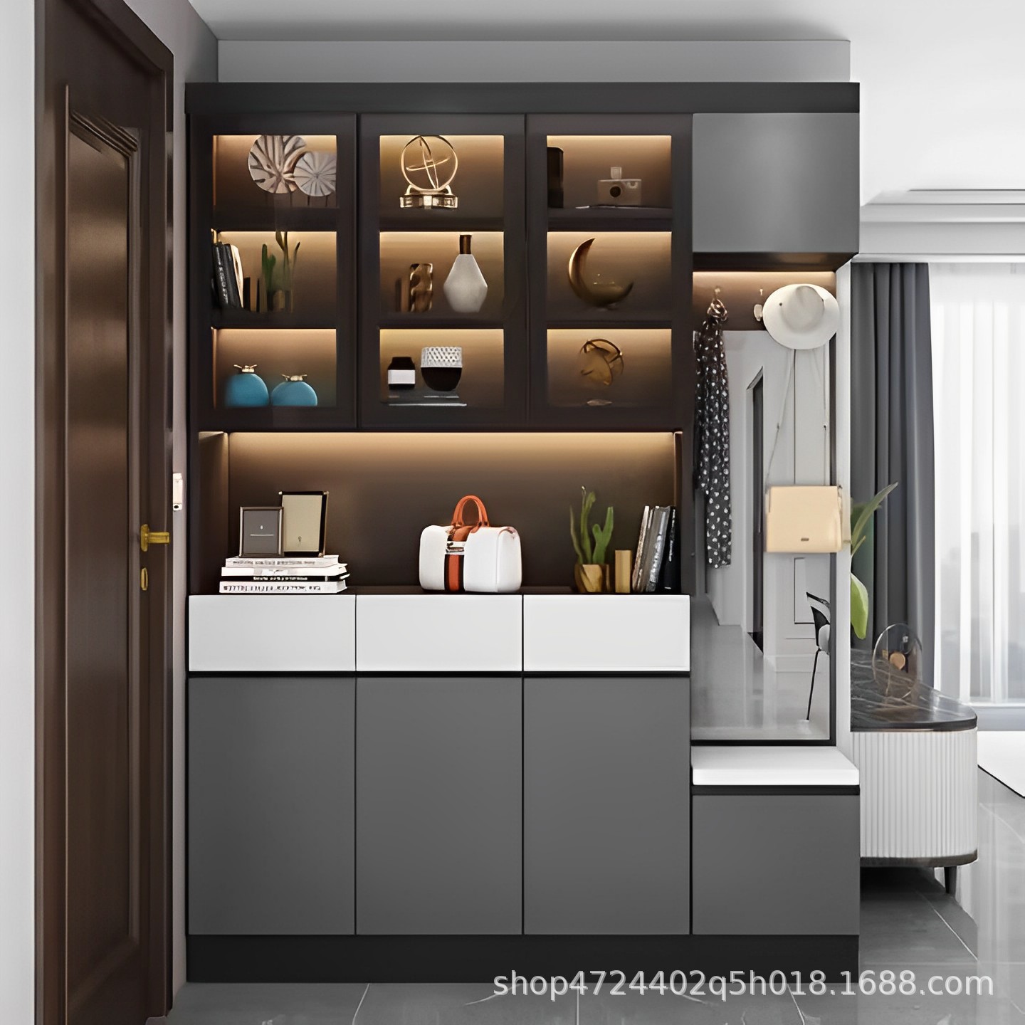 Foshan Kangcheng piring aluminium profesional pabrik furnitur rumah kabinet anggur Villa kabinet sepatu lorong minimalis modern