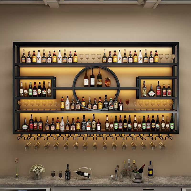 Bar Bar Bar Rak Minuman Anggur dengan Lampu Rak Penyimpanan Rak Tampilan Ruang Makan Rak Penyimpanan Minuman Anggur di Dinding Tipe Gantung