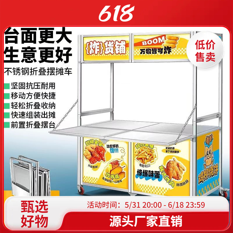 Stainless Steel Multifungsi Lipat Pasar Malam Stand Makanan Ringan Mobile Internet Troli Dapat Dilipat Troli Kecil Mobil Luar Ruangan
