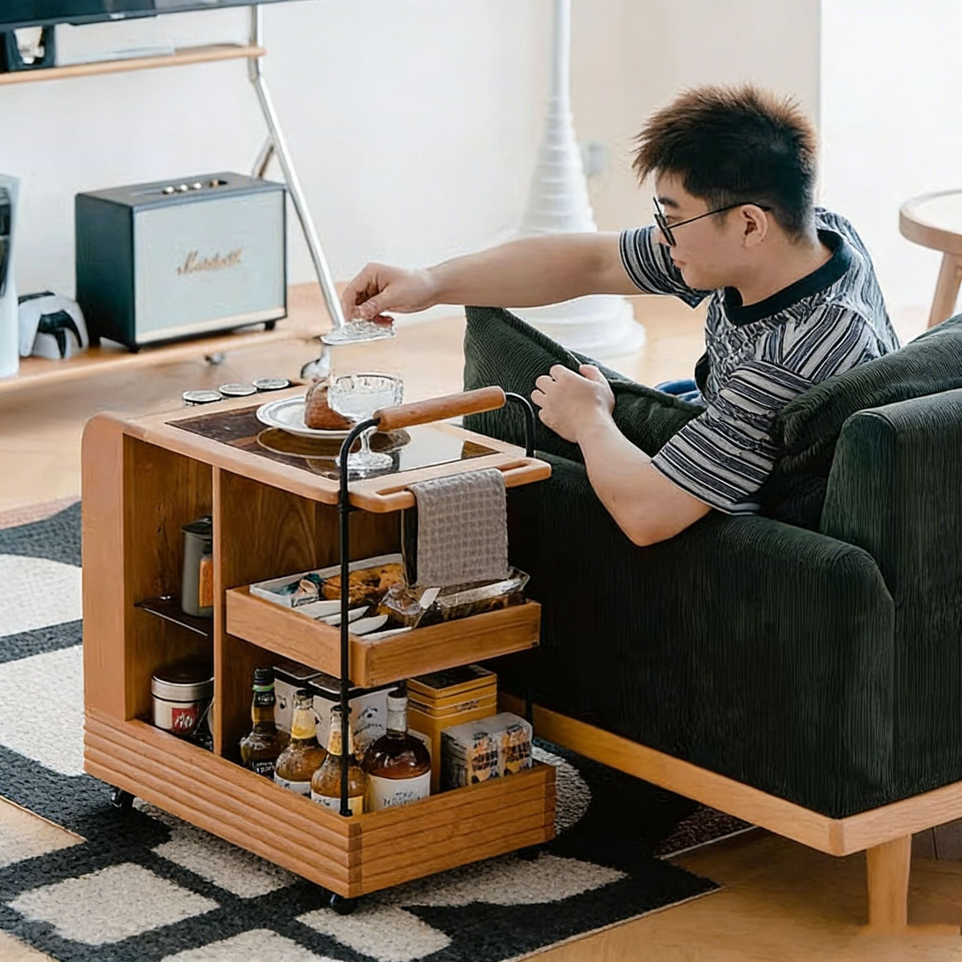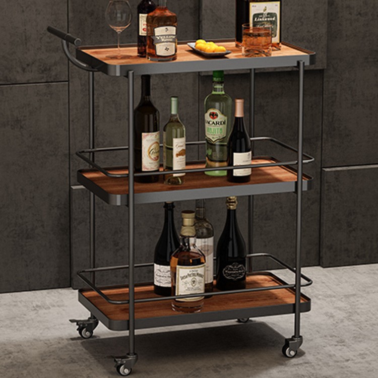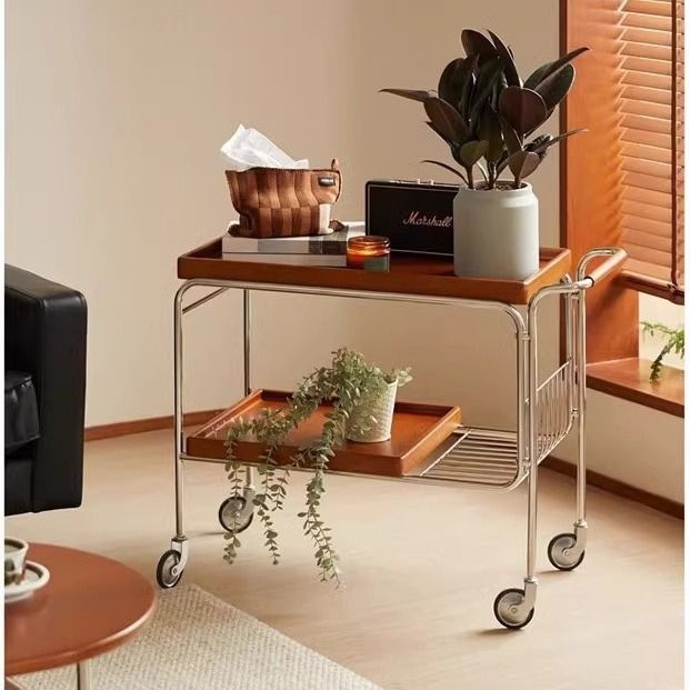 Troli Penyimpanan Minuman Kecil Mobil Makan Bergerak Gaya Pertengahan Rak Penyimpanan Minuman