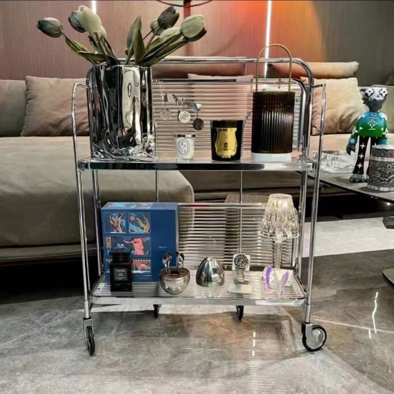 Ins Mobile Troli Mesh Troli Kaca Lipat Selebriti Internet Troli Minuman Mobil Makan Kaca Transparan