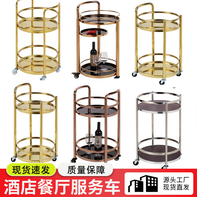 Keranjang anggur bulat lapisan ganda baja tahan karat troli pengiriman teh seluler keranjang layanan restoran hotel gaya Eropa dalam stok