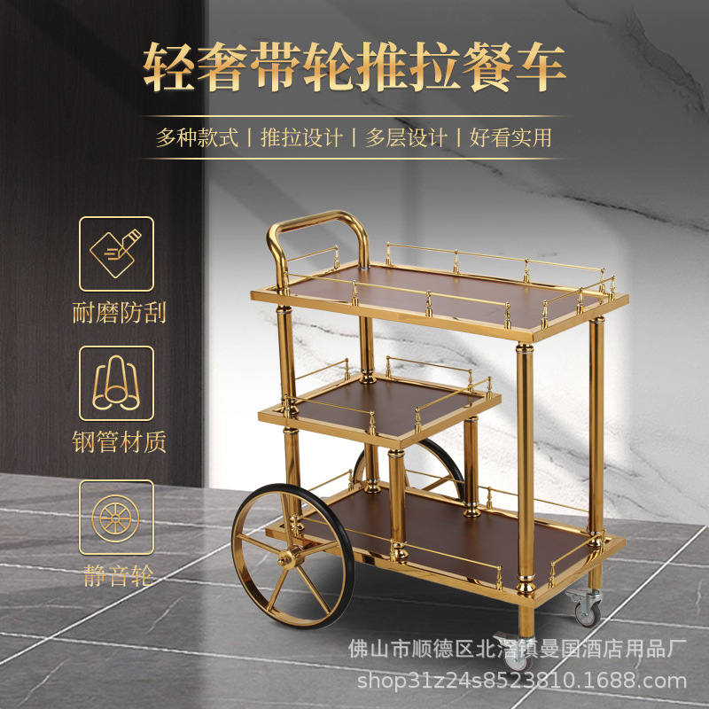 Mobil anggur titanium bergaya Eropa troli anggur Kekaisaran mobil kue dua lapis mobil pengiriman 4s toko makanan ringan hotel mobil servis