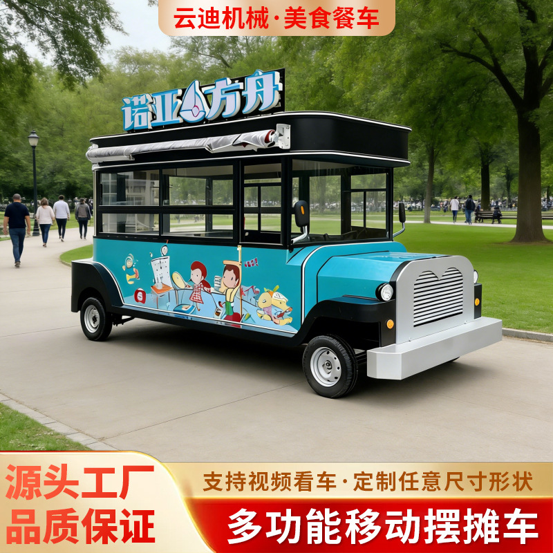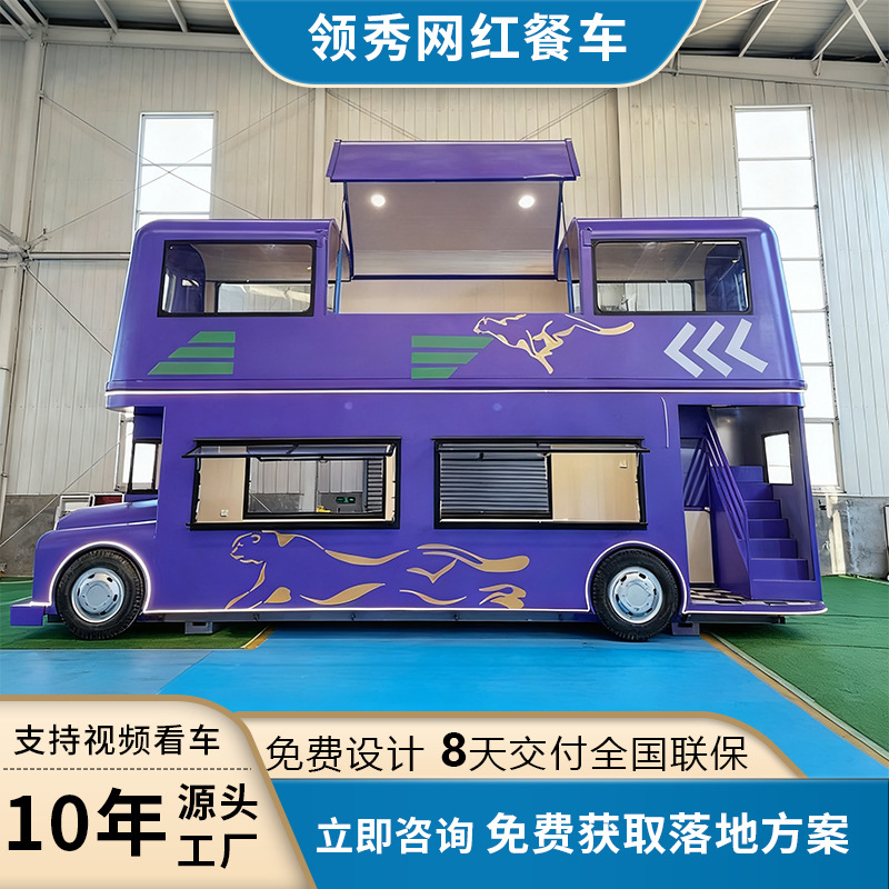 Toko luar ruangan mobil komersial jalan dua dek bus multi-fungsi mobil makan Jalan gourmet retro mobil makan model makanan ringan kreatif