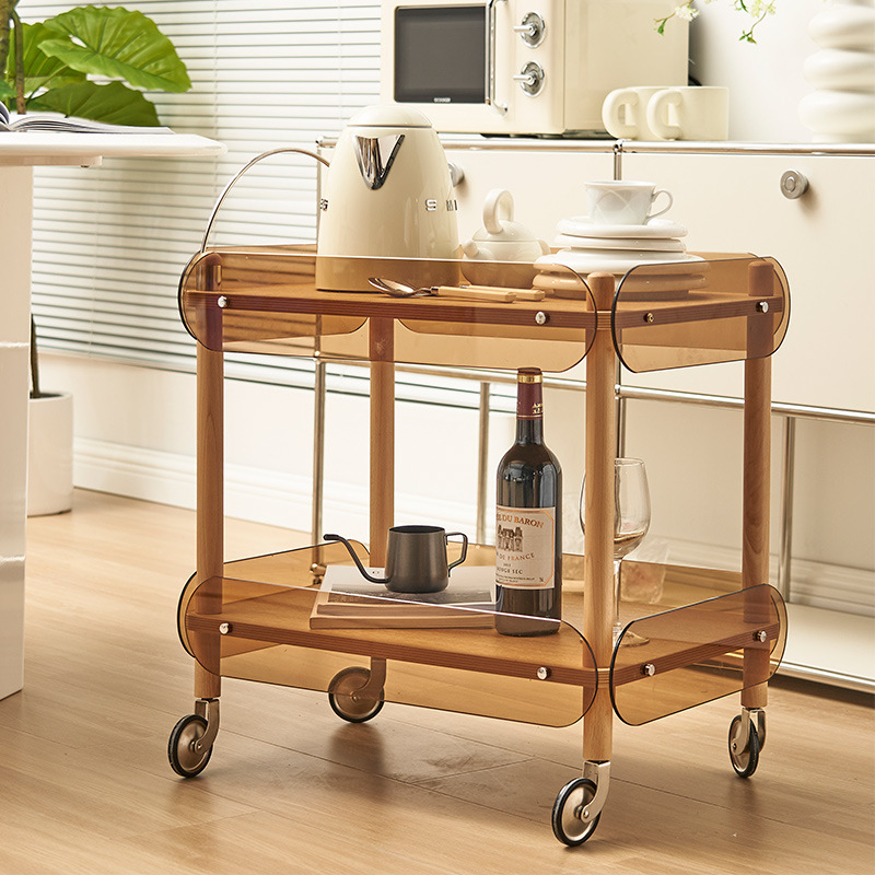Nordic ins Twilight akrilik kayu padat troli dapur makan mobil sofa sisi meja penyimpanan seluler