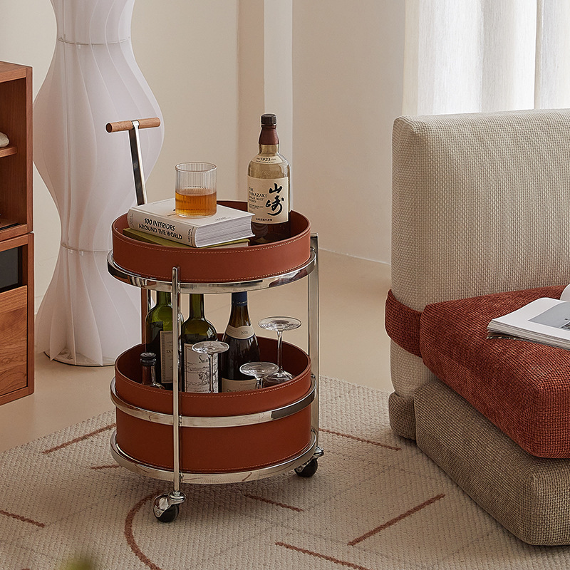 Troli samping Sofa Nordik ruang tamu ponsel, meja sudut riasan bulat retro kamar tidur mobil makan anggur Dorong Tangan