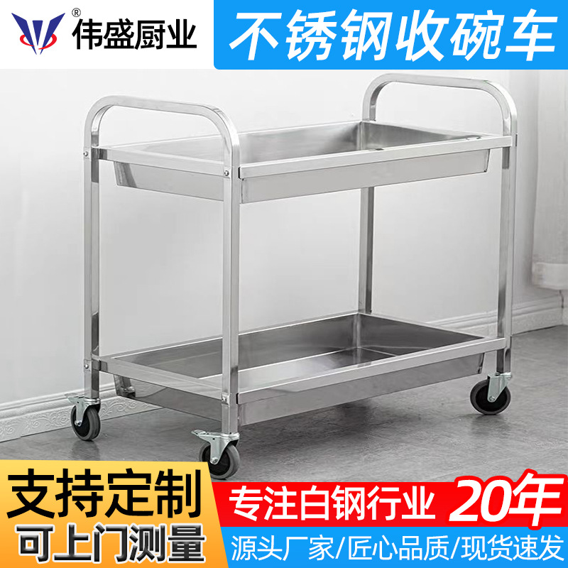 Troli mobil makan baja tahan karat dipertebal, mangkuk Mobil anggur komersial restoran hotel troli dapur grosir