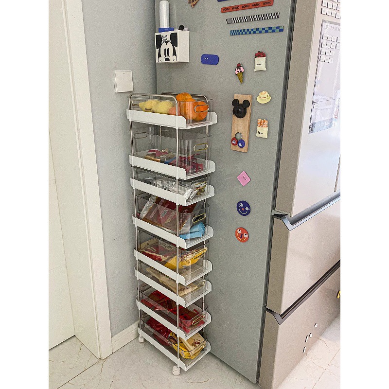 Rak penyimpanan perlengkapan anak dan ibu rumah tangga kapasitas besar rak penyimpanan transparan makanan ringan kamar tidur troli multifungsi dapat bergerak