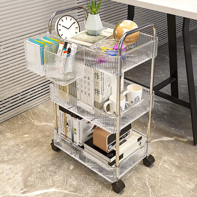 Rak penyimpanan troli akrilik dapat dilepas, rak penyimpanan makanan ringan kamar tidur, kotak kosmetik rol kabinet
