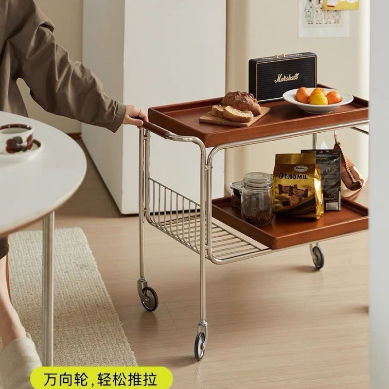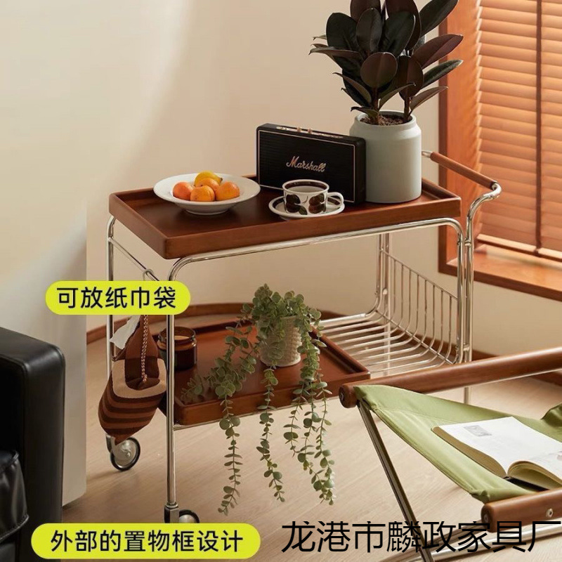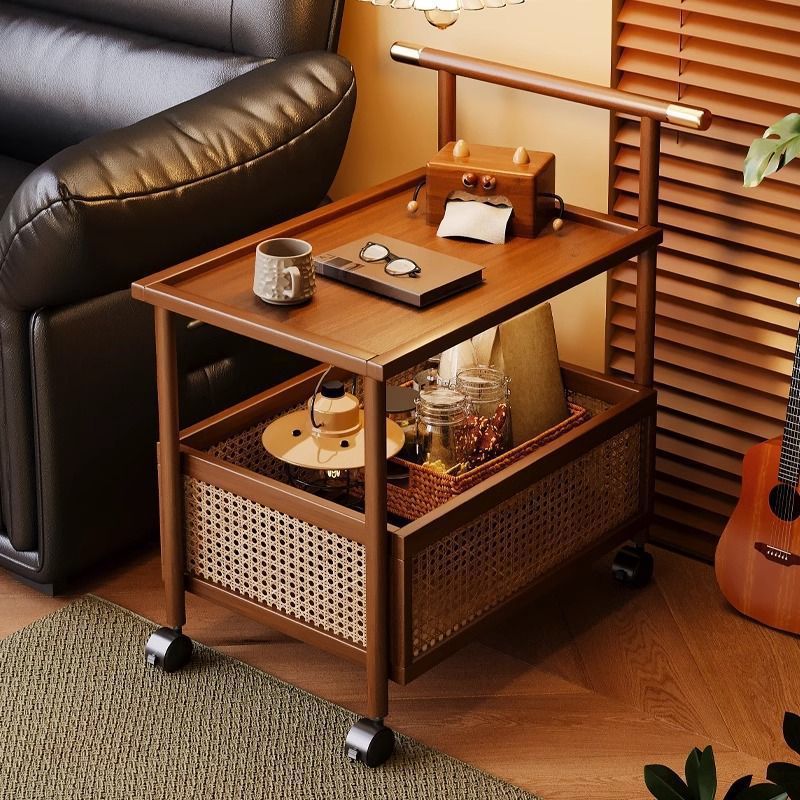 Troli Teh Troli Meja Samping Sofa Kayu Solid Selebriti Internet Troli Lemari Makan Sisi Ruang Tamu Meja Teh Dapat Digerakkan Gaya Jepang Retro