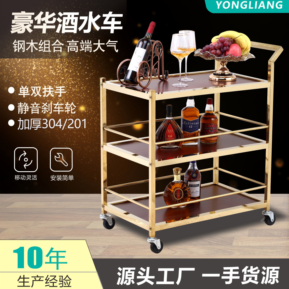 Pegangan tunggal Steelwood wine dining mobil troli hotel restoran mendorong tangan mobil makan 4s shop KTV troli khusus