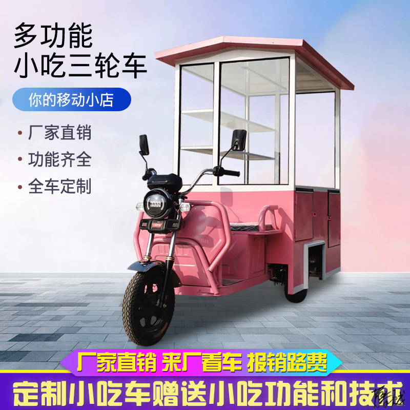 Mobil makanan ringan elektrik kereta kios persegi mobil komersial tali goreng es krim Sarapan mobil pasar malam ponsel tiga roda