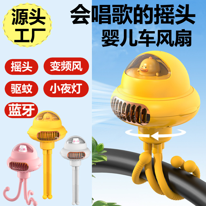 2024 Bernyanyi Kereta Bayi Menggelengkan Kepala Kipas Angin Mini Kartun Dalam Ruangan Tanpa Daun Gurita Portabel