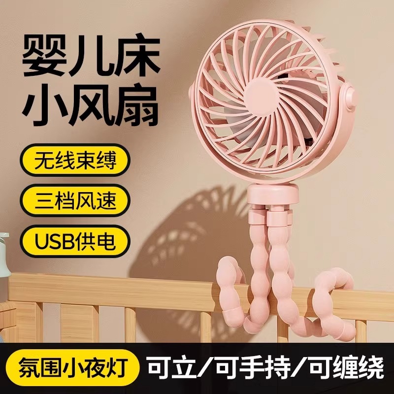 Kereta Dorong Kipas Bayi Kipas Gurita Kipas Portabel Mini Genggam Isi Ulang USB Kipas Kecil Diam Genggam
