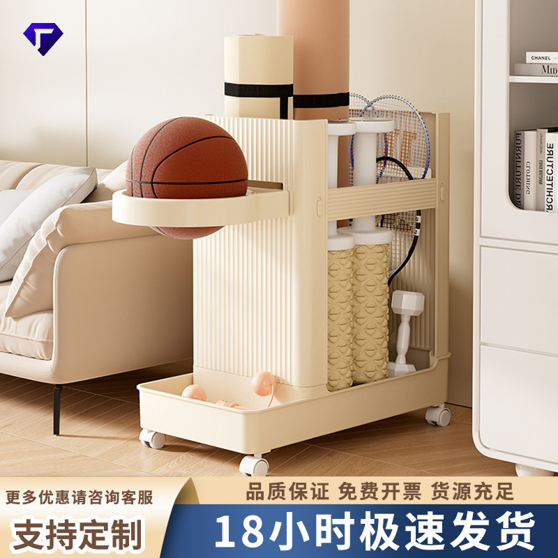 Troli Penyimpanan Peralatan Olahraga Rumah Tangga Keranjang Penyorahan Raket Bulutangkis Bisa Bergerak Raket Alas Yoga Rak Penyimpanan Barang