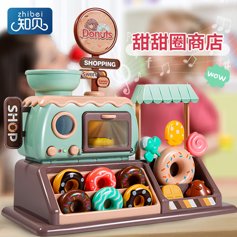 Mainan rumah bermain anak-anak, toko donat elektrik permen musik kecil troli dapur bunyi dan cahaya oven