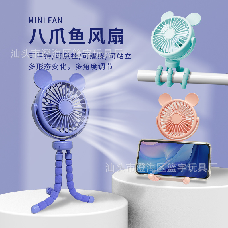 Cross-border kipas gurita mini portabel, kipas langit-langit usb Desktop sunyi kereta bayi luar ruangan