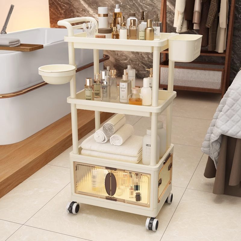 Rak penyimpanan troli, lantai dapur kamar mandi rak penyimpanan ponsel makanan ringan kamar mandi multi-lapisan kamar tidur samping tempat tidur