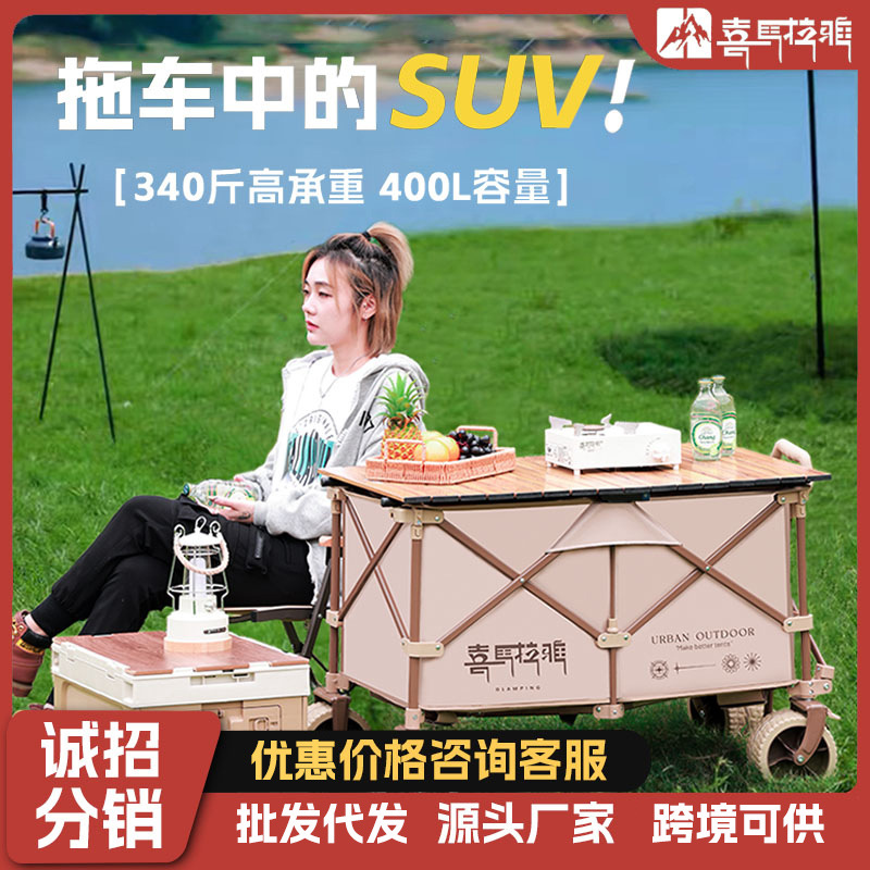 Kereta Kemah luar ruangan piknik besar besar berkemah mobil lipat kereta gandeng Dorong Tangan